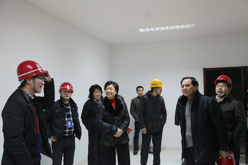 ,縣委副書記馬芳妹在縣機關事務管理局領導的陪同下檢查水務大廈裝修工地。集團單寶子、張則再等領導陪同。