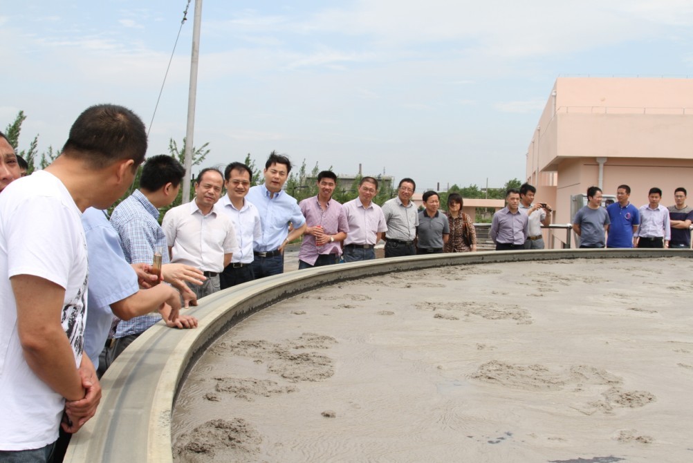 ,福全鎮(zhèn)黨委書記王勤率企業(yè)家代表一行40余人到紹興水處理公司調(diào)研氣浮項目。調(diào)研組實地參觀了污水處理一期穩(wěn)流池和氣浮工程現(xiàn)場,仔細聽取了技術人員對工藝技術的講解,并對經(jīng)氣浮工藝處理前、后水樣進行觀測。隨后,調(diào)研組一行在四樓會議室進行座談,進一步了解有關情況。會上,印染企業(yè)老總紛紛表示,通過這次考察和交流,了解了污水處理的新工藝、新技術,對政府提出的納管新要求充滿了信心。